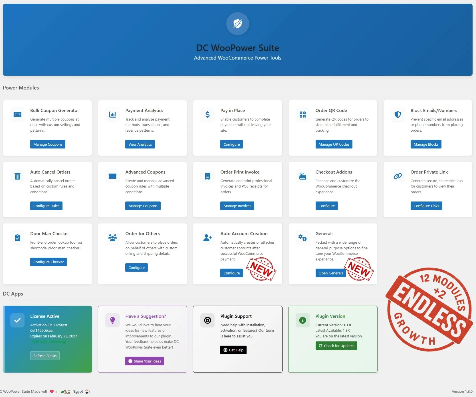 DC WooPower Suite replaces that mess with a single, modular toolkit. Toggle what you need. Scale without fear.