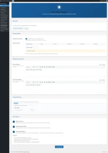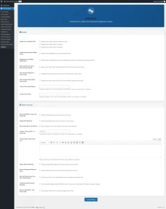 providing a centralized admin page for general configuration options, including advanced WordPress/WooCommerce email controls (auto‑update notifications, password reset and new user emails, “Get the app” ads, payment method and coupon visibility) and admin UI/UX tweaks (admin bar/logo visibility and position, dashboard cleanup, custom footer and “Howdy” text, wp‑admin access blocking, and customizable handling of permission‑denied and 404 redirects).